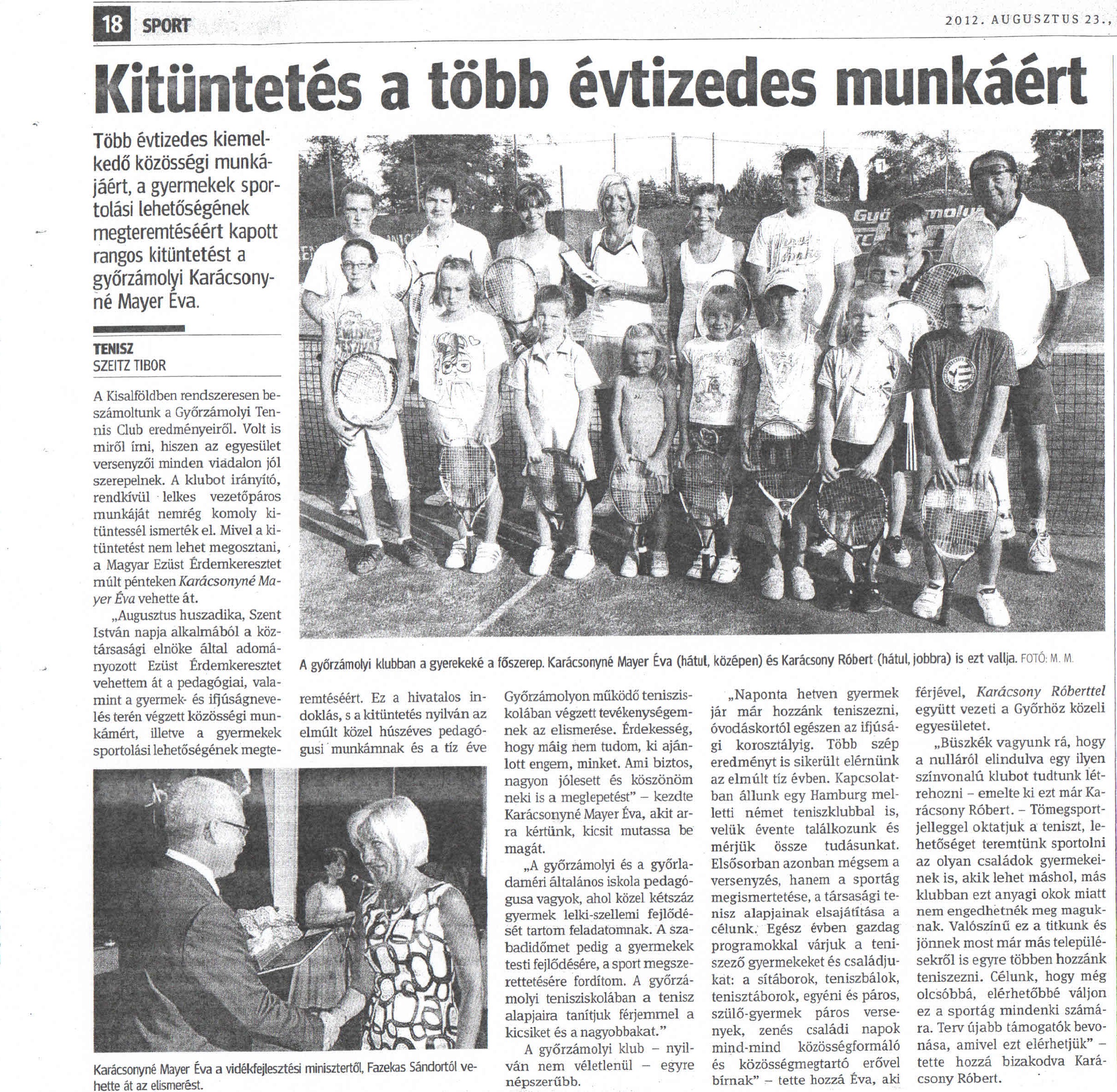 A Győrzámolyi KTC Tennis Club 2002. év tavaszától működik. 4 teniszpálya található a Szigetköz szívében, Győrtől 6 km-re a festőien szép barokk templom mellett, a több mint száz éves gesztenyefasor árnyékában. A Tennis Club számos rendezvényével, pl. a gyermekek részére szervezett tenisztáborok, sítáborok mellett, teniszversenyek, teniszbálok és más családi rendezvények szervezésével teszi kellemessé az idelátogató helyi és környékbeli teniszezők szabadidejét. ![]() |